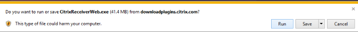 Internet Explorer: When you click an application or desktop icon you may see the following message depending on your Internet browser version. Click Open/Runif you asks about launch.ica file.