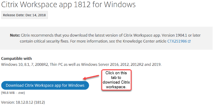 Alternatively, the installation may be downloaded from: https://www.citrix.com/downloads/workspace-app/legacy-workspace-app-for-windows/workspace-app-for-windows-1812.html