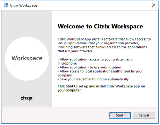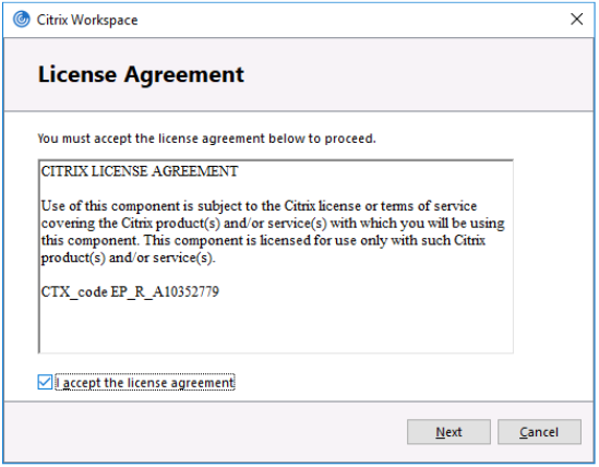 If the Citrix Workspace is not installed on your computer, you will be prompted to install one. You will need to agree to the license agreement to proceed.