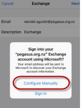 4- You will then get a pop up to sign in to your Exchange account. Select Configure Manually from the options