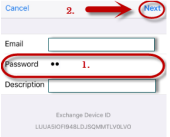 3- Type in your Email address to the Email field, then tap Next on the upper right-hand corner. It is your option if you want to change the description field as it shows My Exchange Account by default