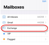 8- Then select Exchange or if you changed the description name, it will show the name that you have changed it to. It should download all the emails on your account