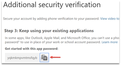 9. You’ll get an app password that you can use with Outlook, Apple Mail, etc. Choose the copy icon to copy the password to your clipboard. You won’t need to memorize this password.