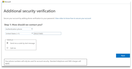 15. Once you complete the instructions to specify how you want to receive your verification code, the next time you sign in to Office 365, you’ll be prompted to enter the code that is sent to you by text message, phone call, etc.
