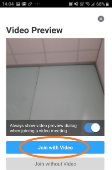 You will then see the video preview (unless you have previously de-selected this option), tap Join with video